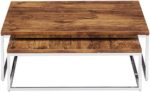 - Wohnzimmertisch mit elegantem Materialmix, der sich in nahezu jede Einrichtung fügt – Das verchromte Gestell setzt einen modernen Akzent gegenüber der robusten, rustikalen MDF-Platte in Holzoptik